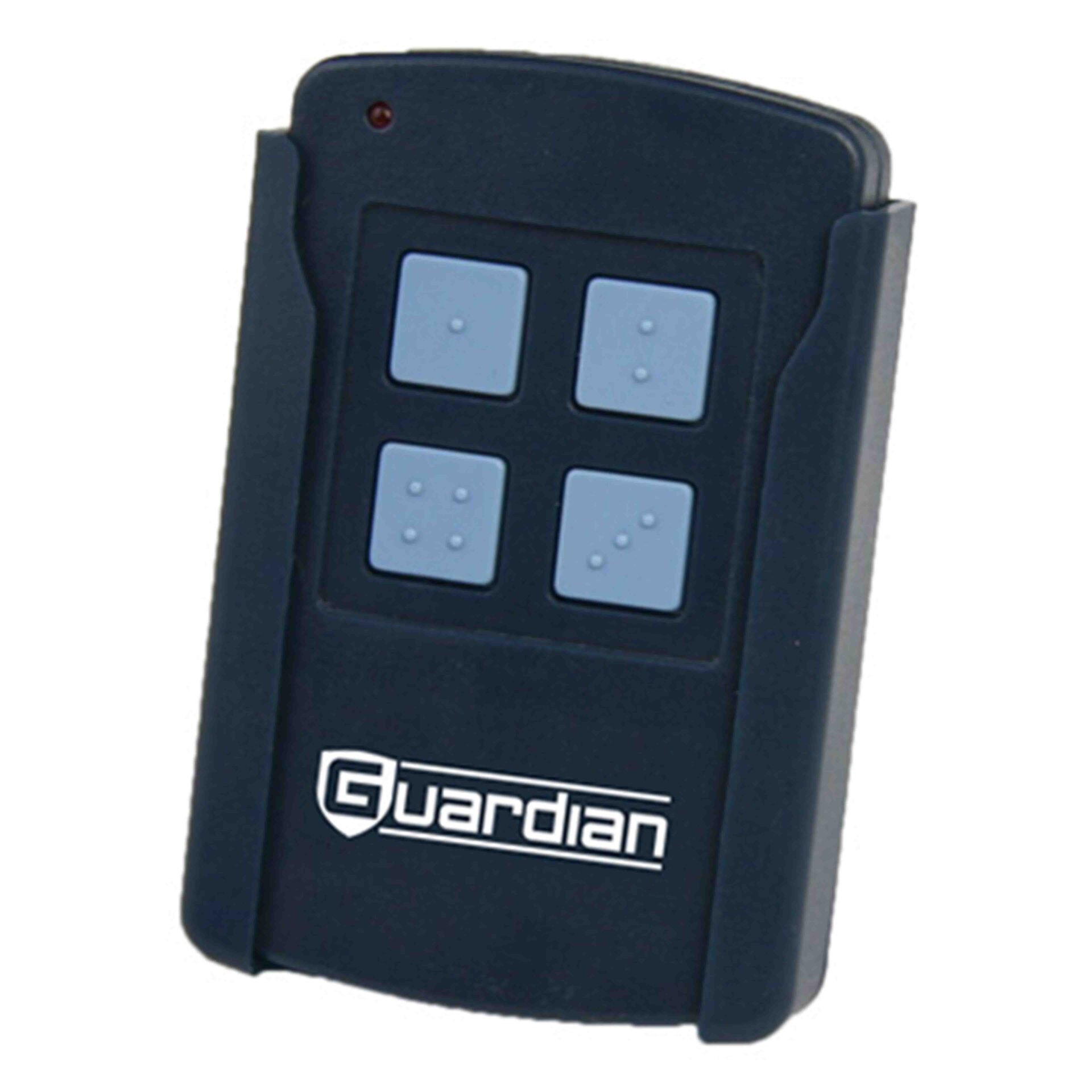 This traditional but unique design can attach to your visor with the handy visor clip. The dip-switch control of one of the buttons makes this a perfect remote for gated communities. Control a gate or up to four Guardian garage door openers.
